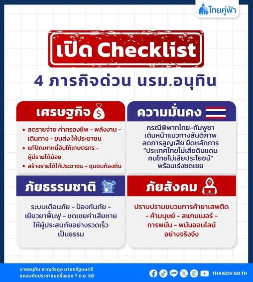 โผ ครม.อนุทิน แค่พอไปวัดไปวา แต่คำประกาศของนายกฯอนุทิน หลังรับพระบรมราชโองการโปรดเกล้าฯ ชักธงรบ ๔ ภัยคุกคามประเทศไทย คมชัดน่าเลื่อมใส
